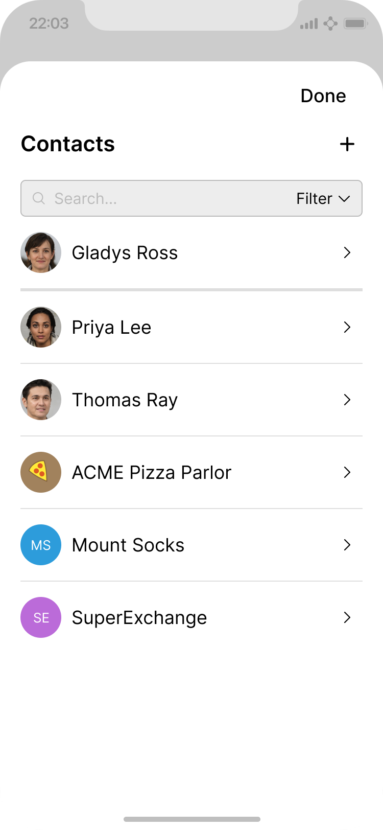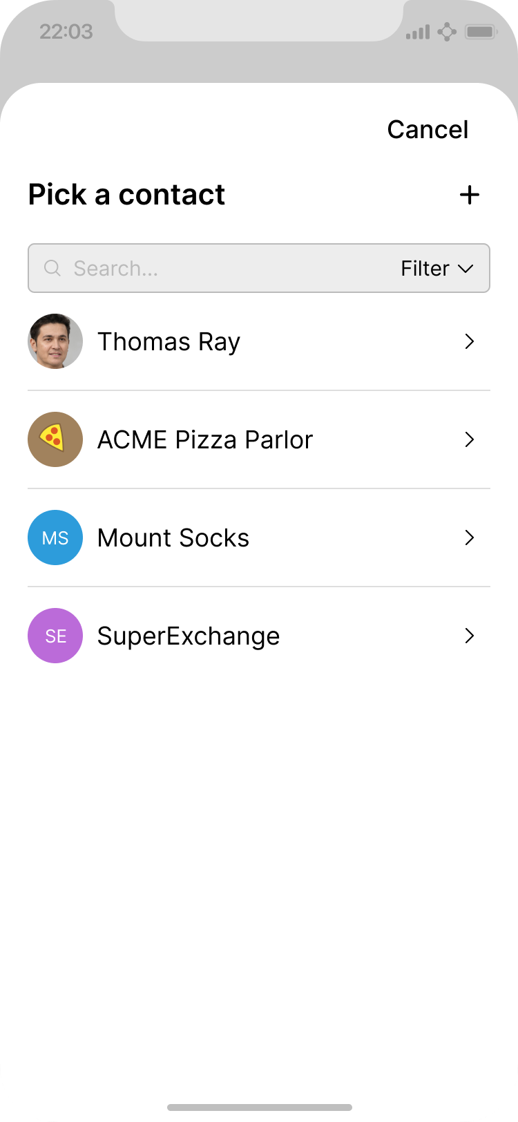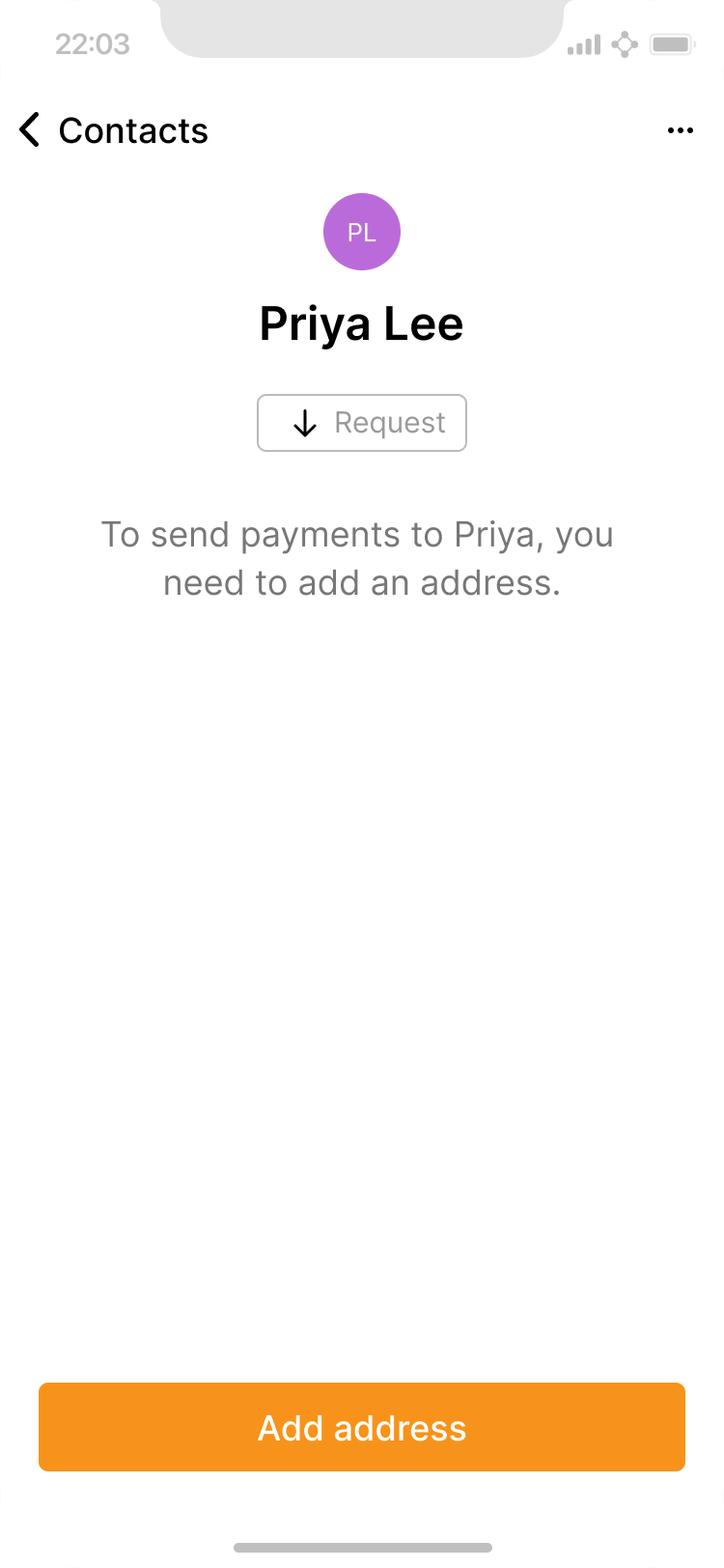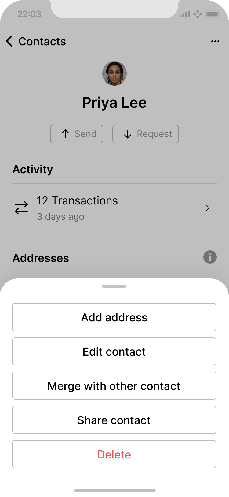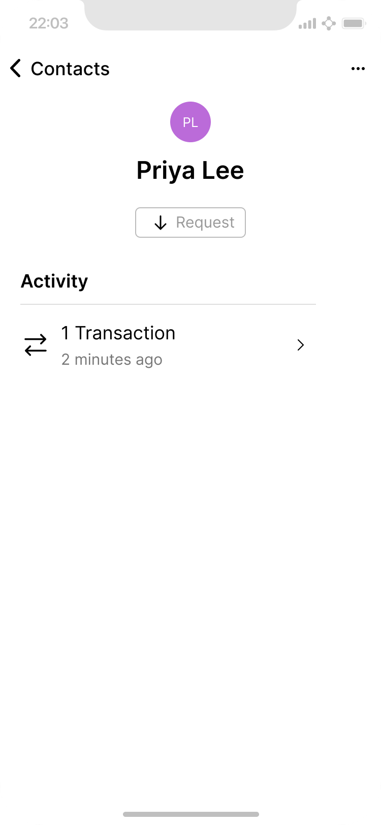 Contacts are closely intertwined with sending, requesting, and the activity screen. When designing these user flows, pay close attention to how they connect. The less convenient it is for users to assign contacts, the less likely they are to use this feature and the higher the chance that they are exposed to the complexities of the various payment request formats.