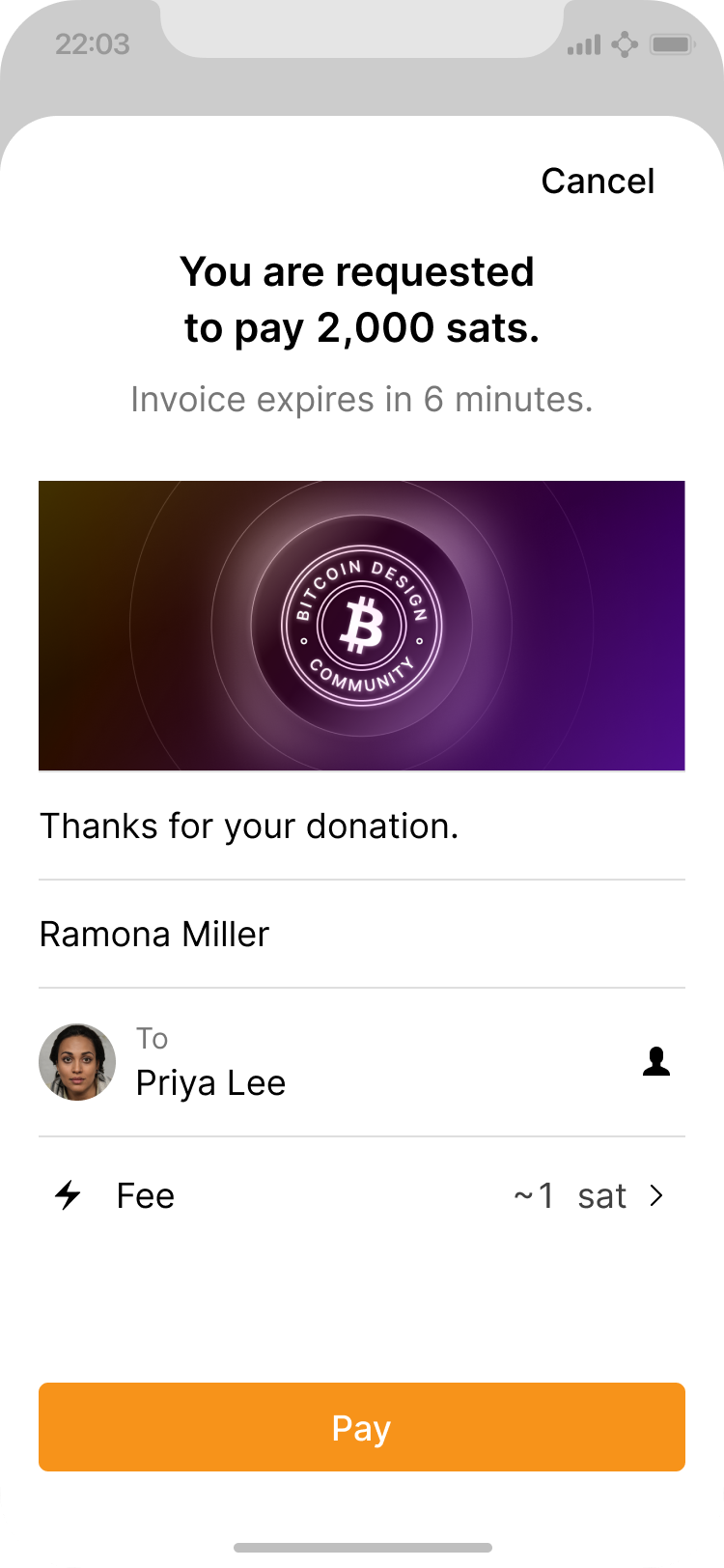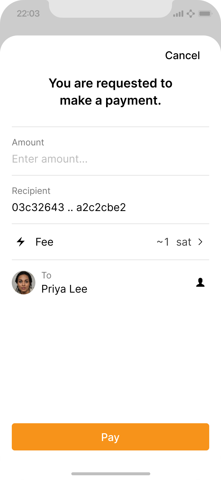 Payment requests may also contain recipient names. These can be used to suggest the name for a new contact to the user. Names can be spoofed, so they should not be automatically assigned without user approval.