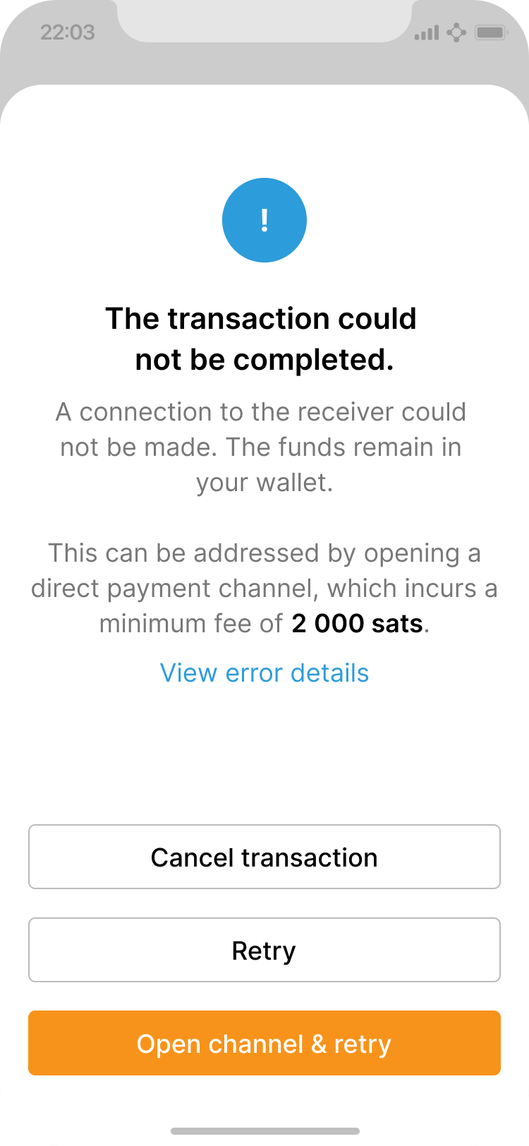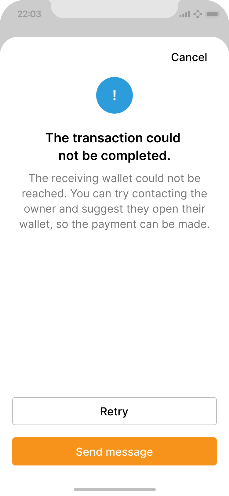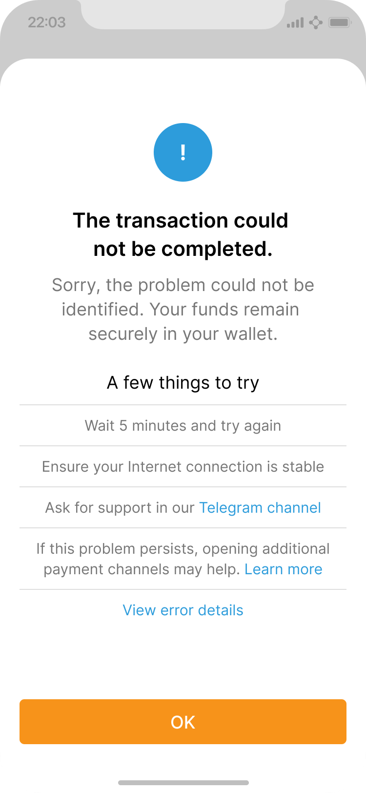 Handling problems gracefully is particularly important when it comes to payments, as users may be concerned about having lost funds. Clear communication may include: