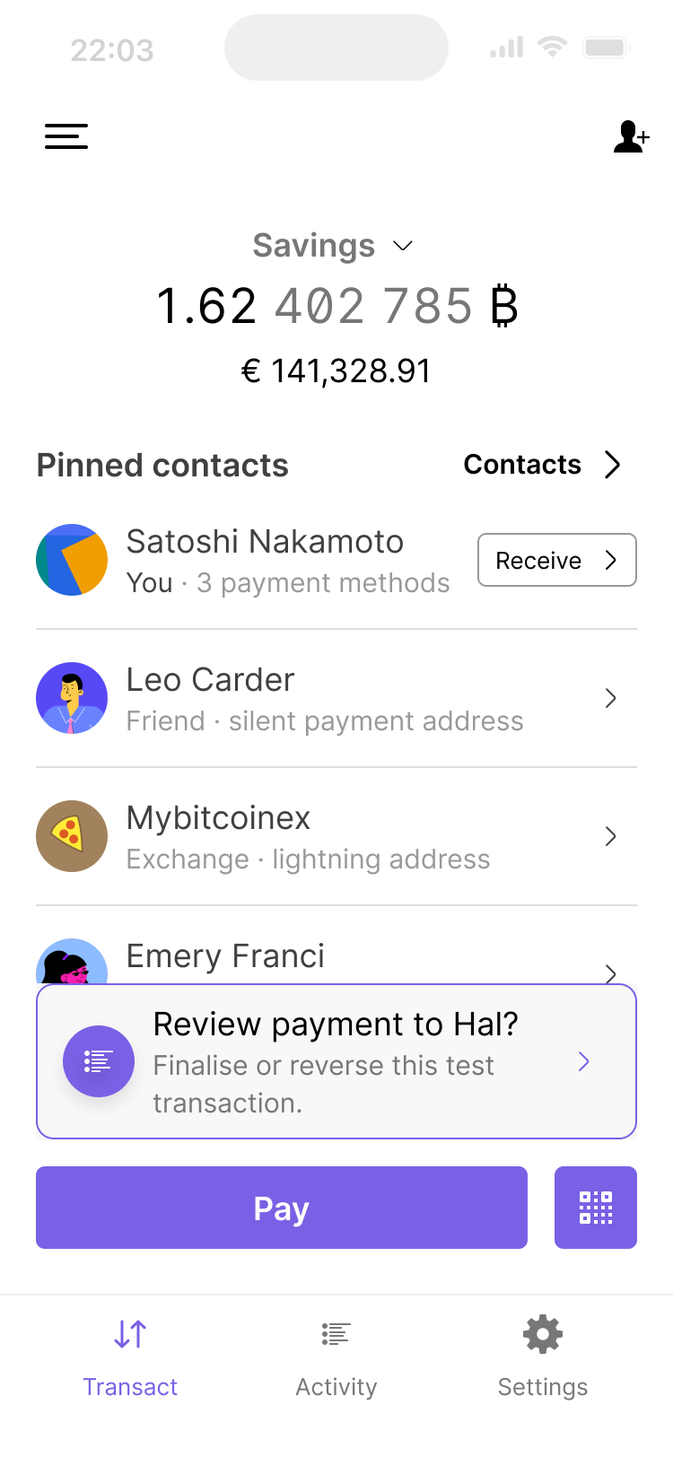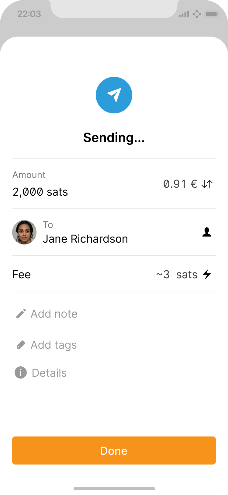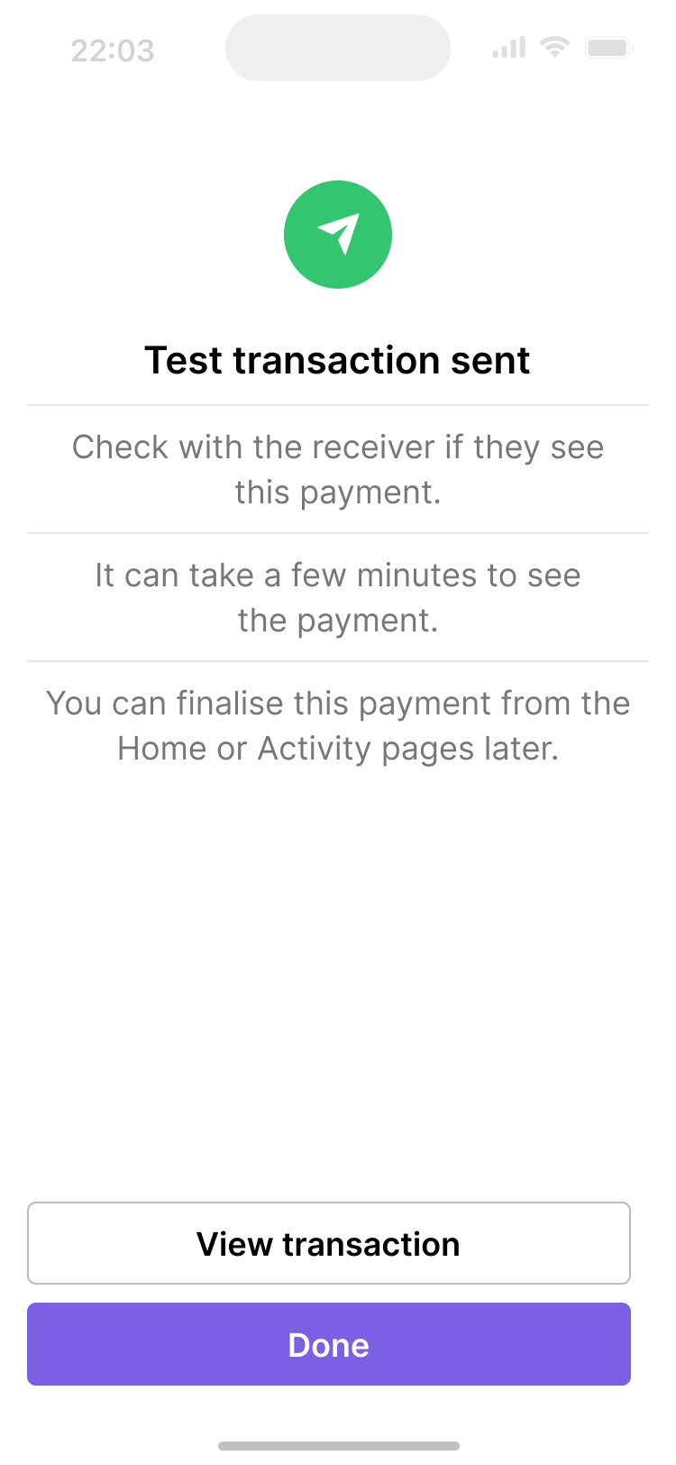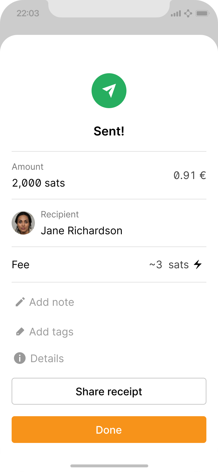 It should also be simple to share a proof that the payment was made. In-person, it may suffice to show the screen to the receiver. Additional options like sharing the confirmation via chat or email may also be useful.
