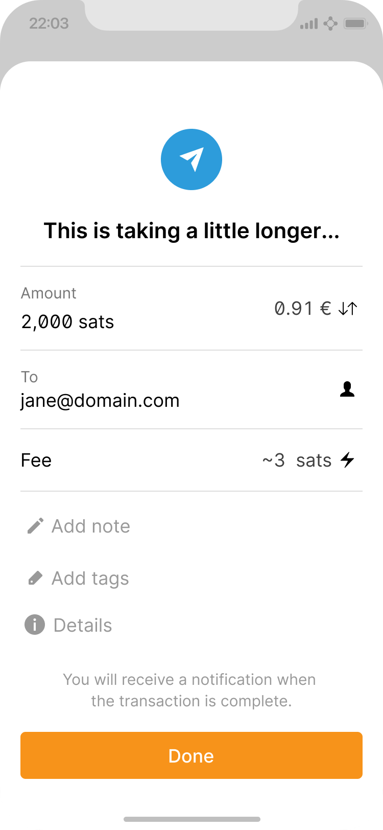 In case a user needs to briefly wait, the application should not block the interface, but offer other useful actions to perform, such as labelling and tagging the payment, or adding the recipient to the contact list.