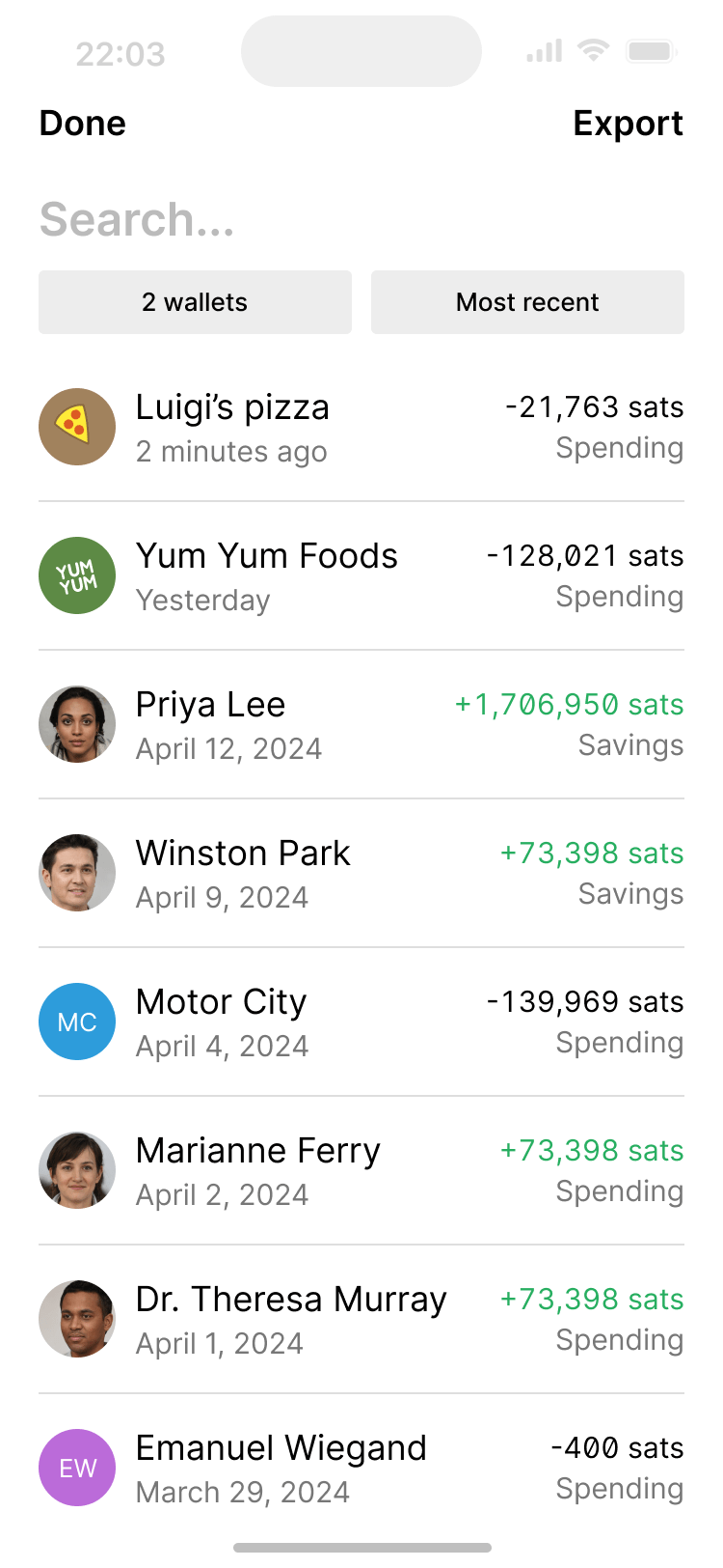 We also keep a single contact book across wallets. Whereas for balance and transactions, we default to separate views by default, with the option for a unified view. More on that below.